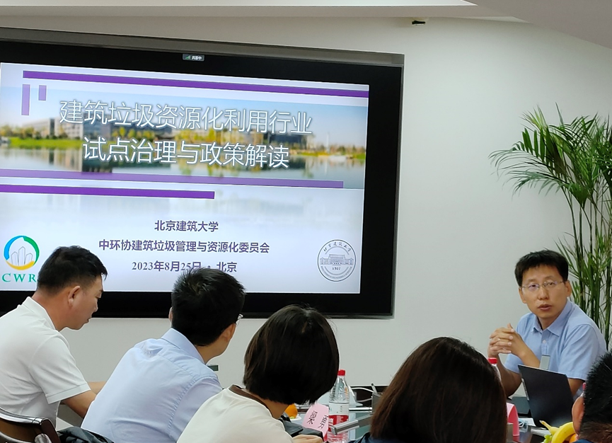 交流会由中国循环经济协会城镇固废资源化专委会秘书长刘林主持,首先分别由刘林秘书长与北爱尔兰投资发展署领导Richard Seymore致欢迎词,并由特邀专家北京建筑大学李飞教授就我国建筑垃圾资源化利用行业试点治理与政策解读发表了专家报告。